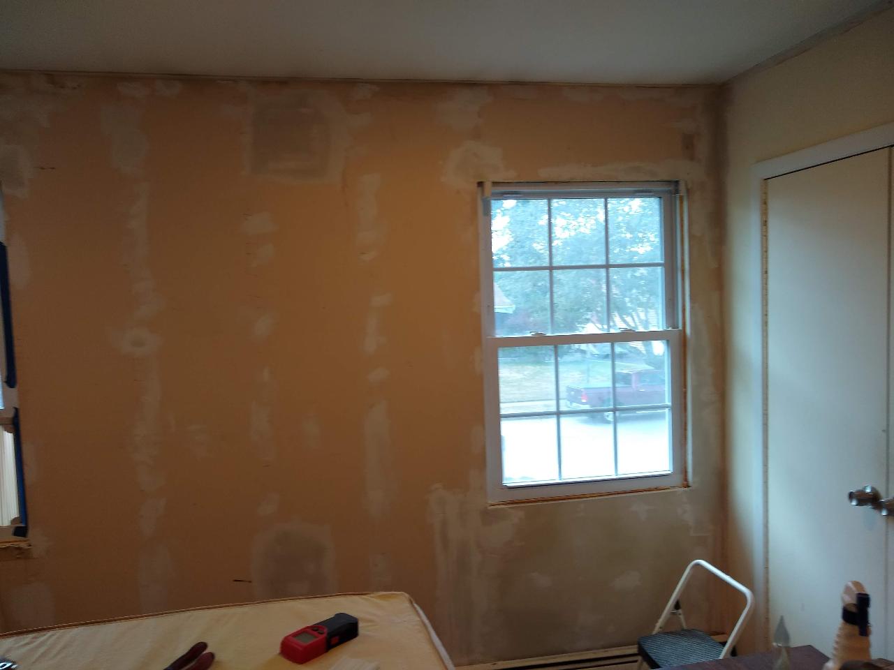 With the furring strips removed, there was a TON of sheetrock work to fix up the old walls.(08/19/2019)