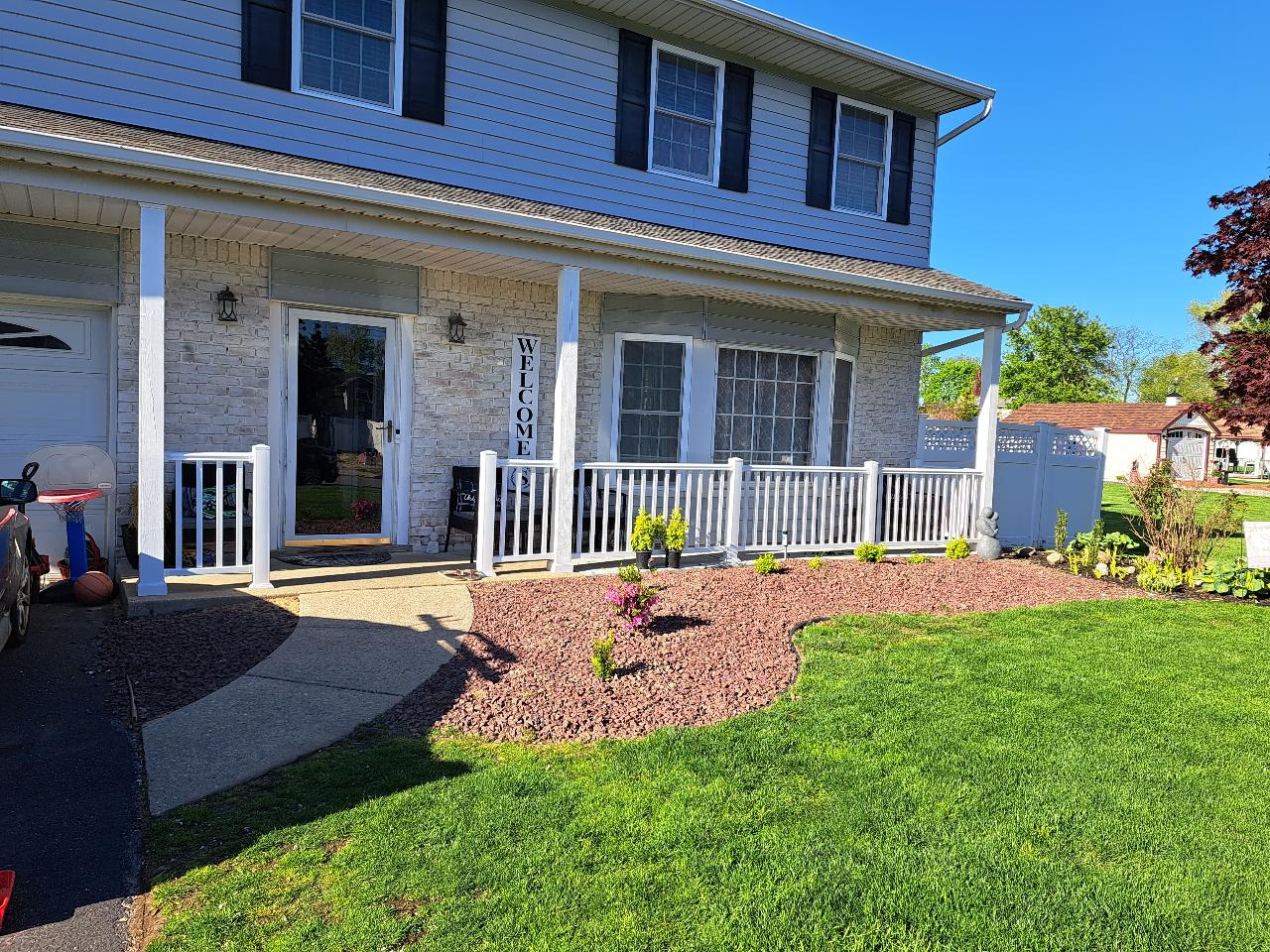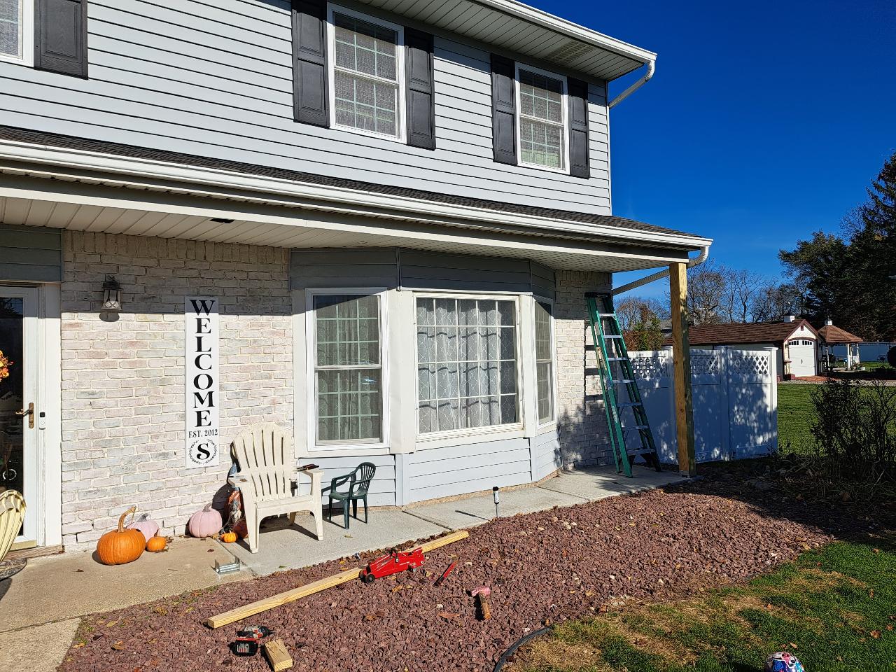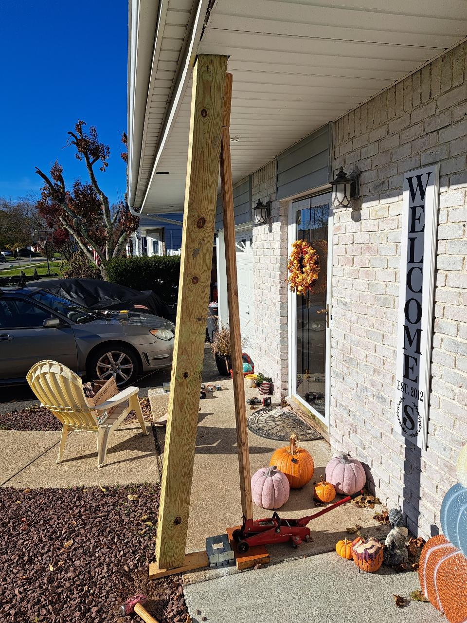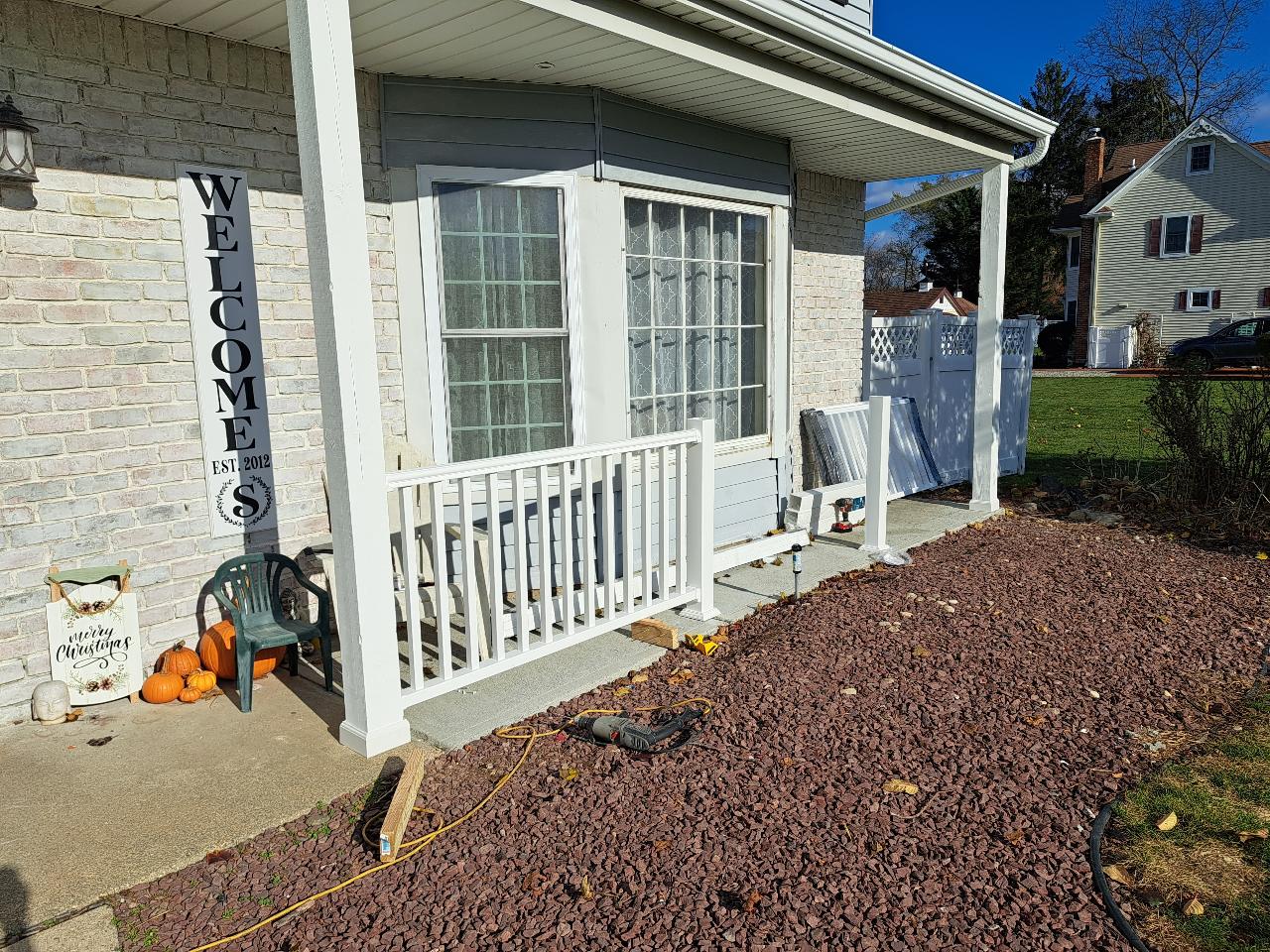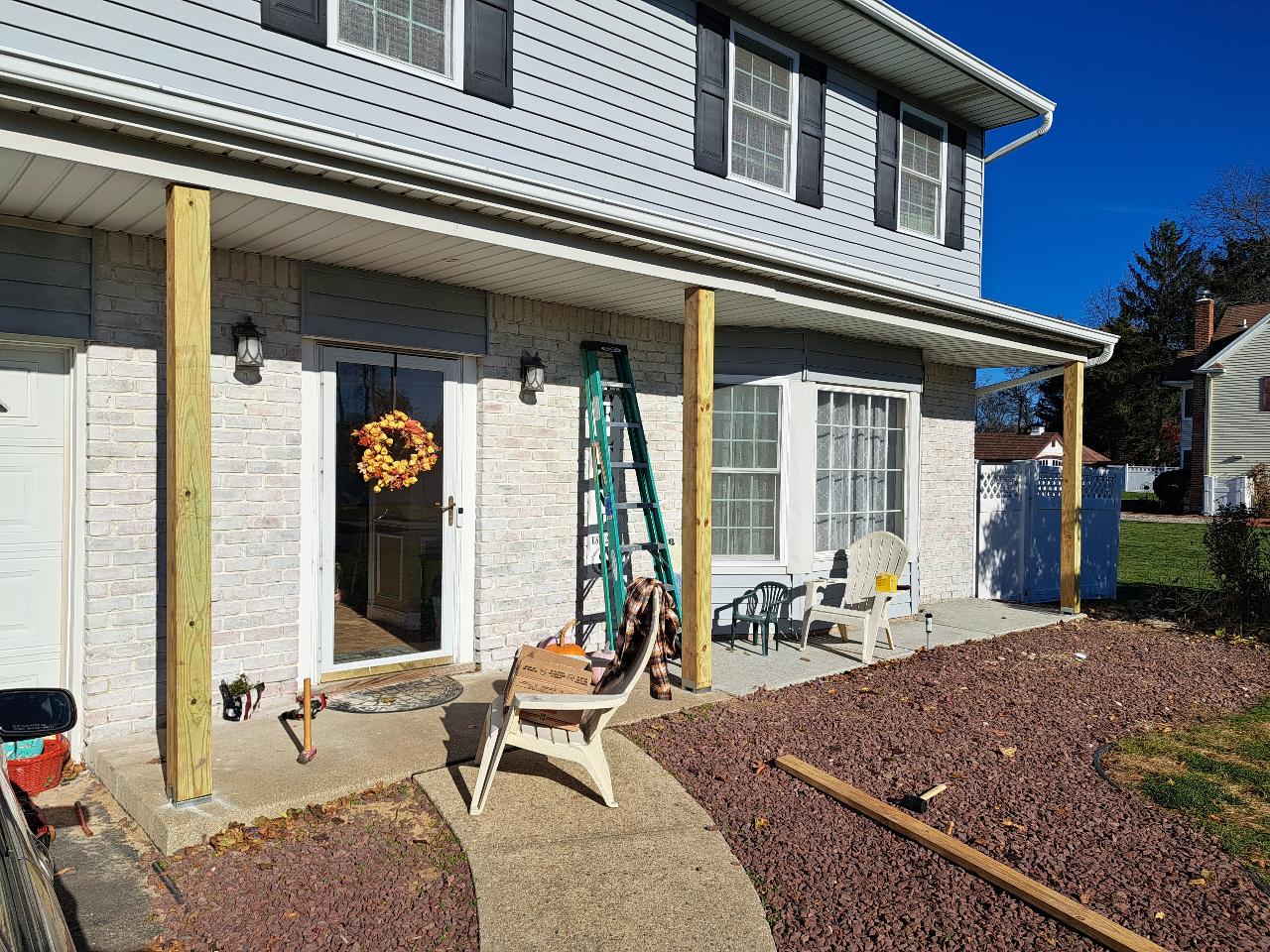For years we had wanted a front porch, or at least the look of one. The overhang is less than 4 feet deep. Its a tight fit, but in the end, it works well.