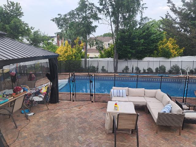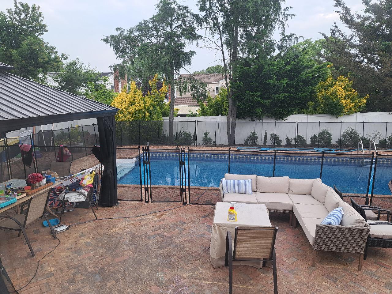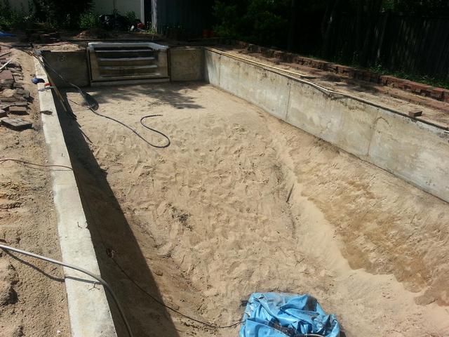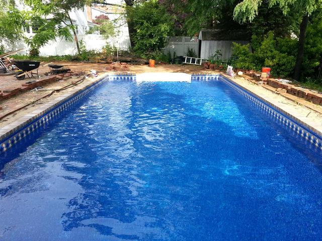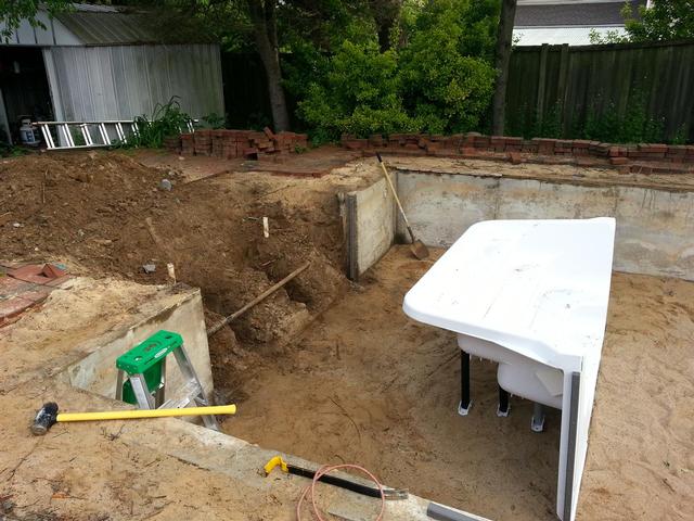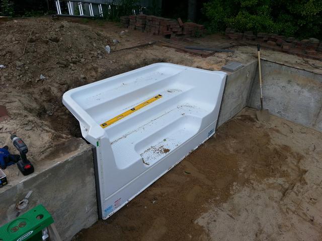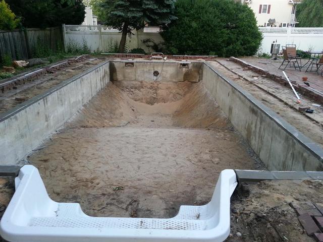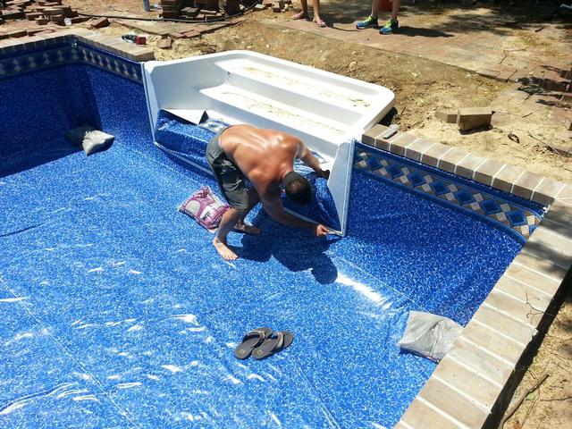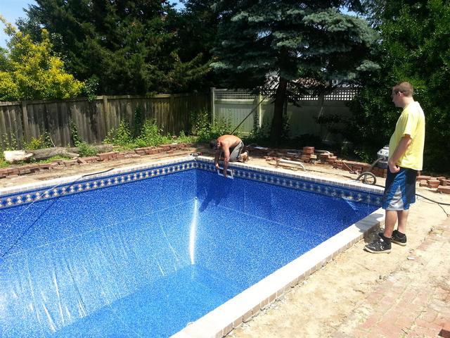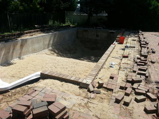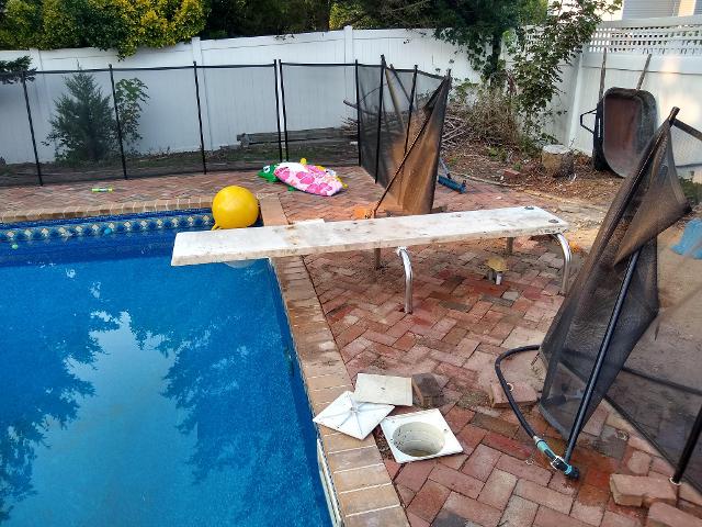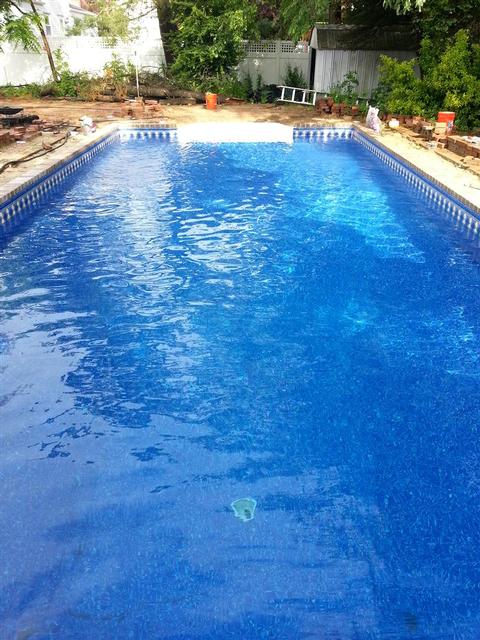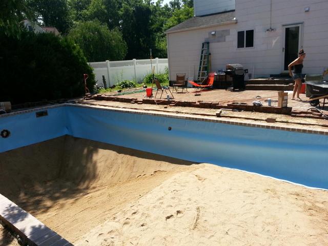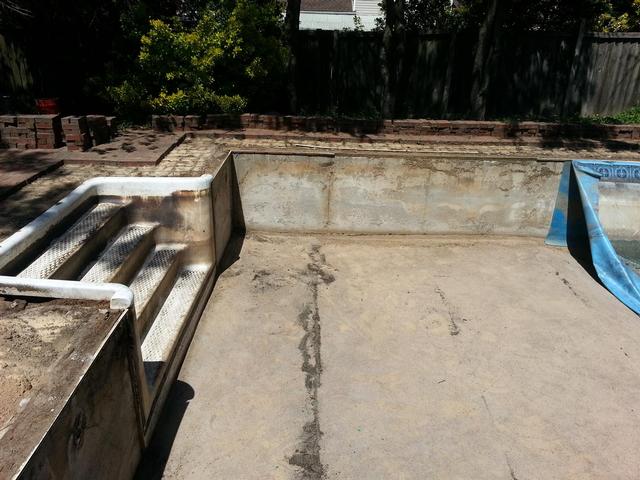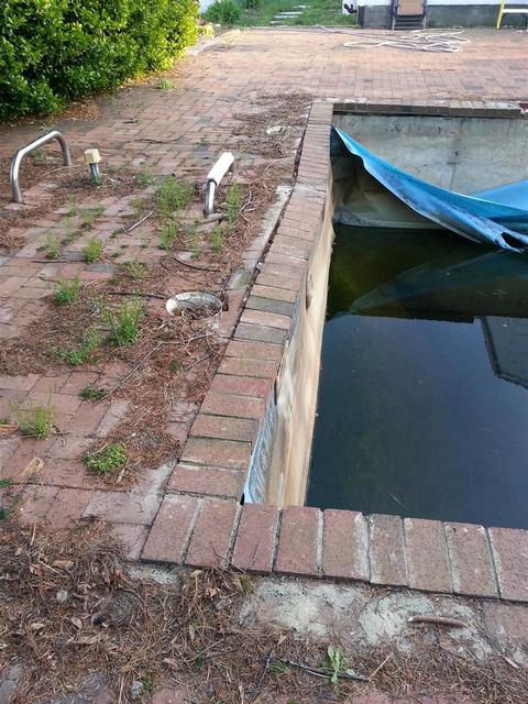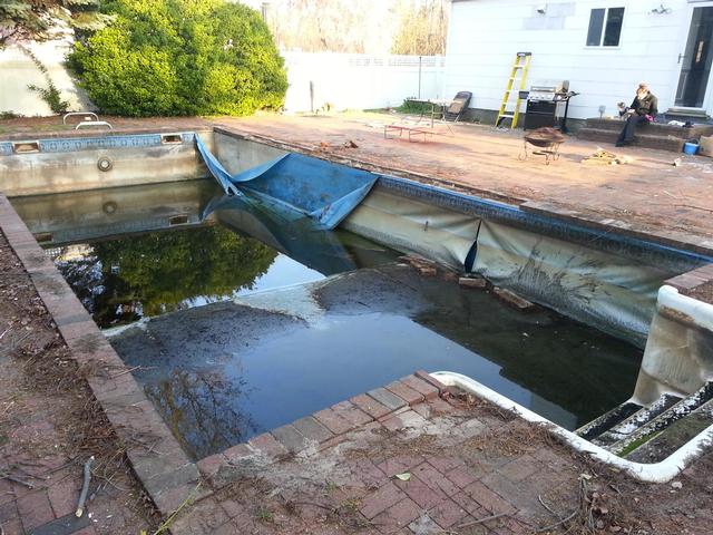The previous owners had not opened the pool in eight years. It had been holding water at the time we had our home inspection. Sometime between the inspection and when we took posession, the liner let go. We knew it was going to be in rough shape. We finally took the cover off, and what do you know....