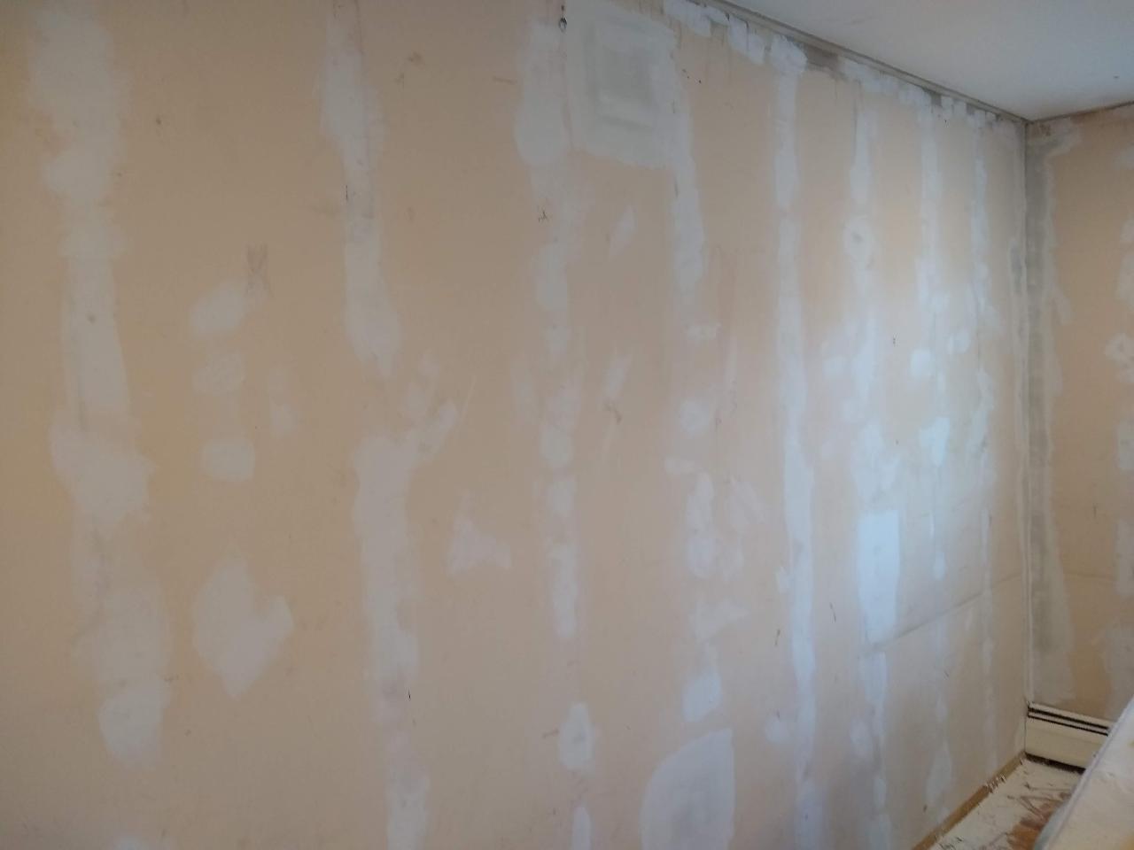 With the furring strips removed, there was a TON of sheetrock work to fix up the old walls.(08/19/2019)