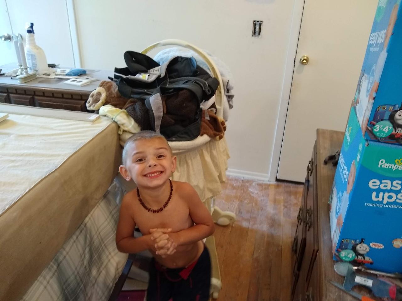 He rolled on about two strokes of paint and gave up on helping.(08/19/2019)