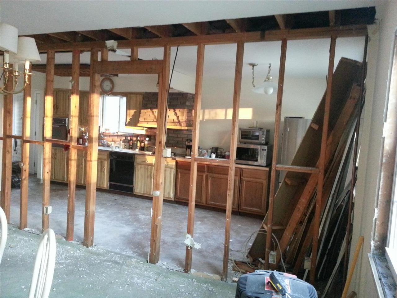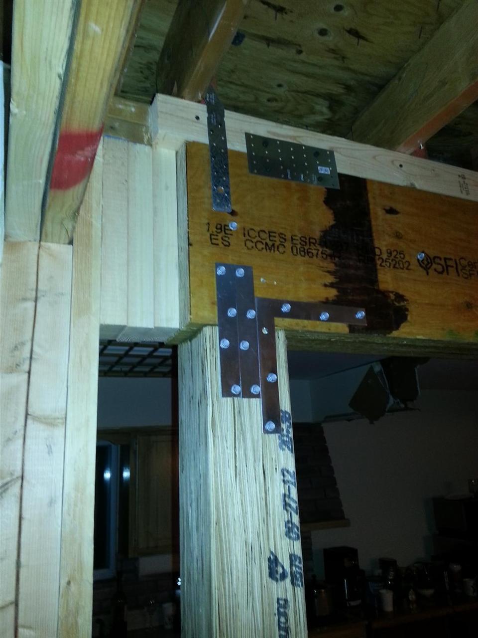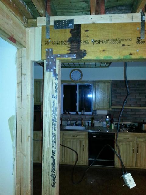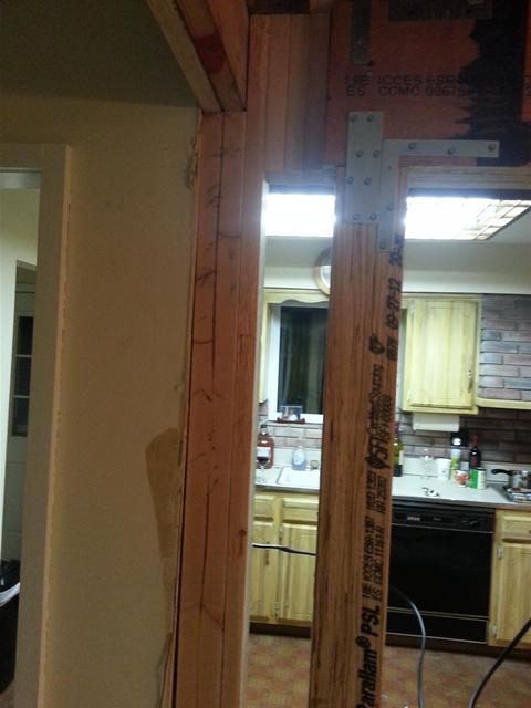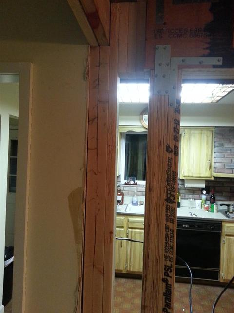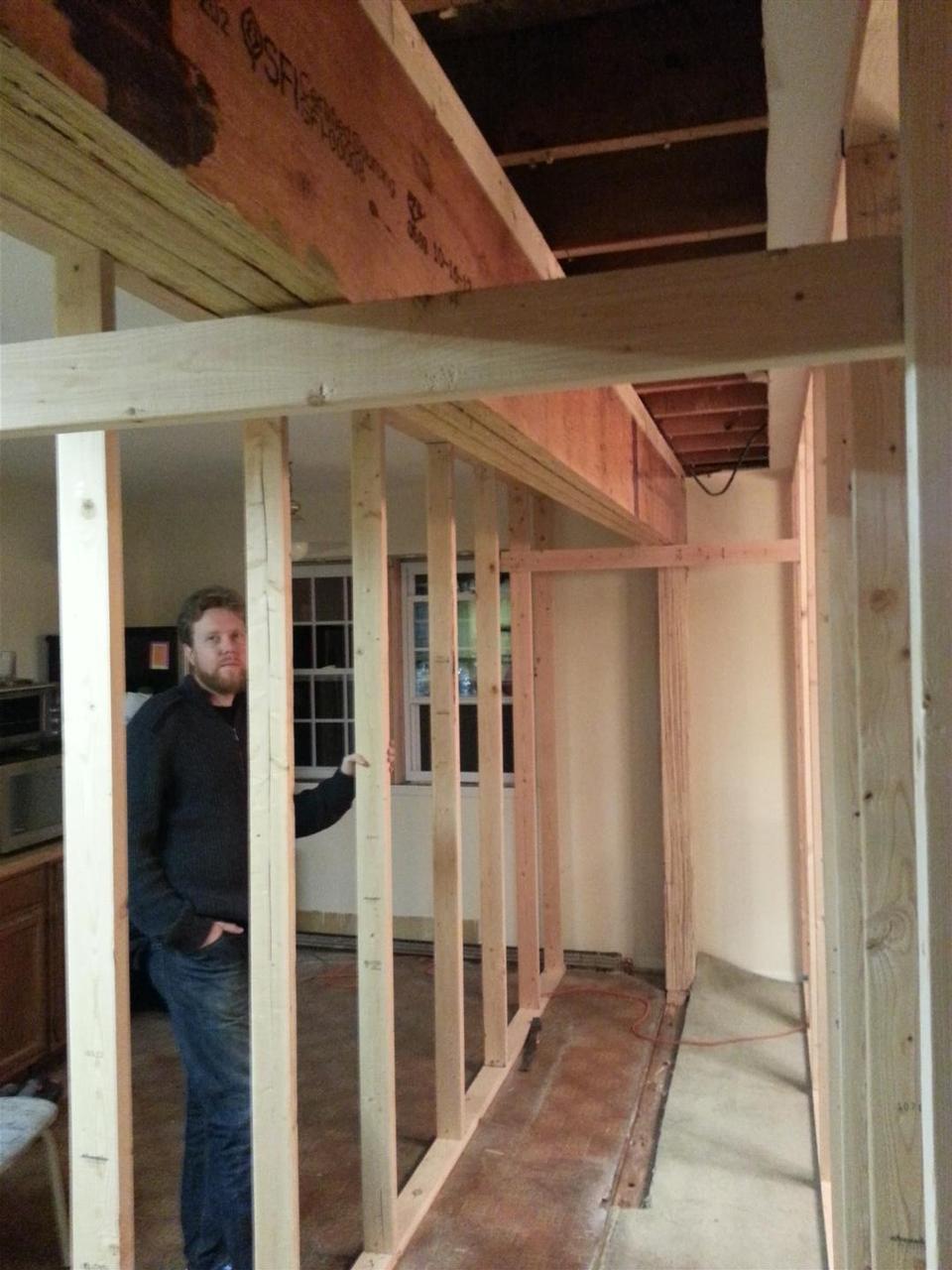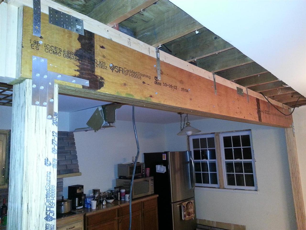 Even before Lauren and I had an accepted offer on the new house, we knew we would be tearing down the wall between the kitchen and the dining room. Unfortunately since this wall runs directly under the second story exterior wall. This means the wall carries all the weight of the second floor joists, kitchen ceiling joists, exterior walls and both first and second story roof load - making this wall extremely load bearing. With a span nearly 16 feet in length, this is not something you want to ballpark. An architect and family friend - appropriately named Bill Wall - was kind enough to work up a quick set of plans and spec the beam out for us.