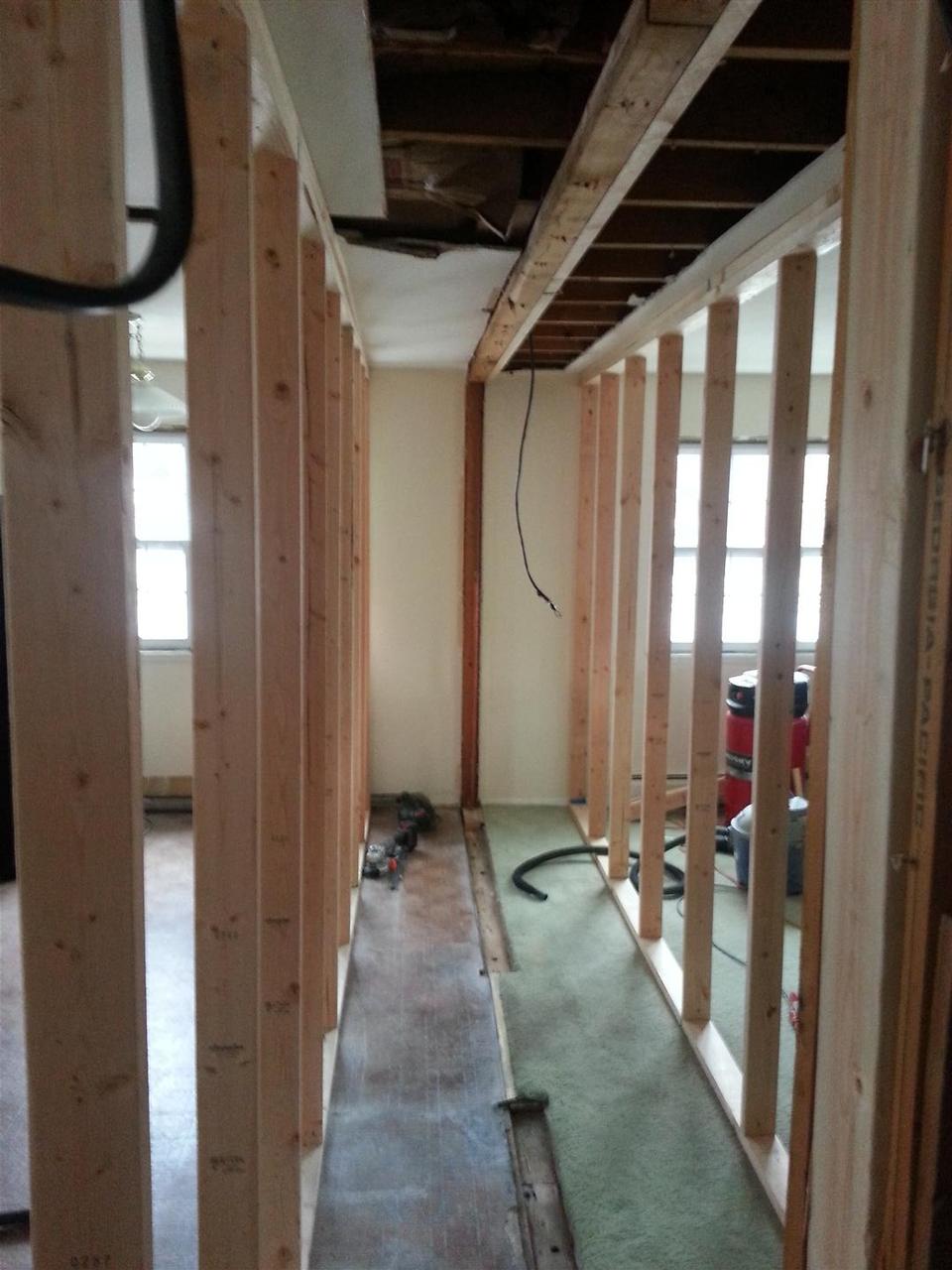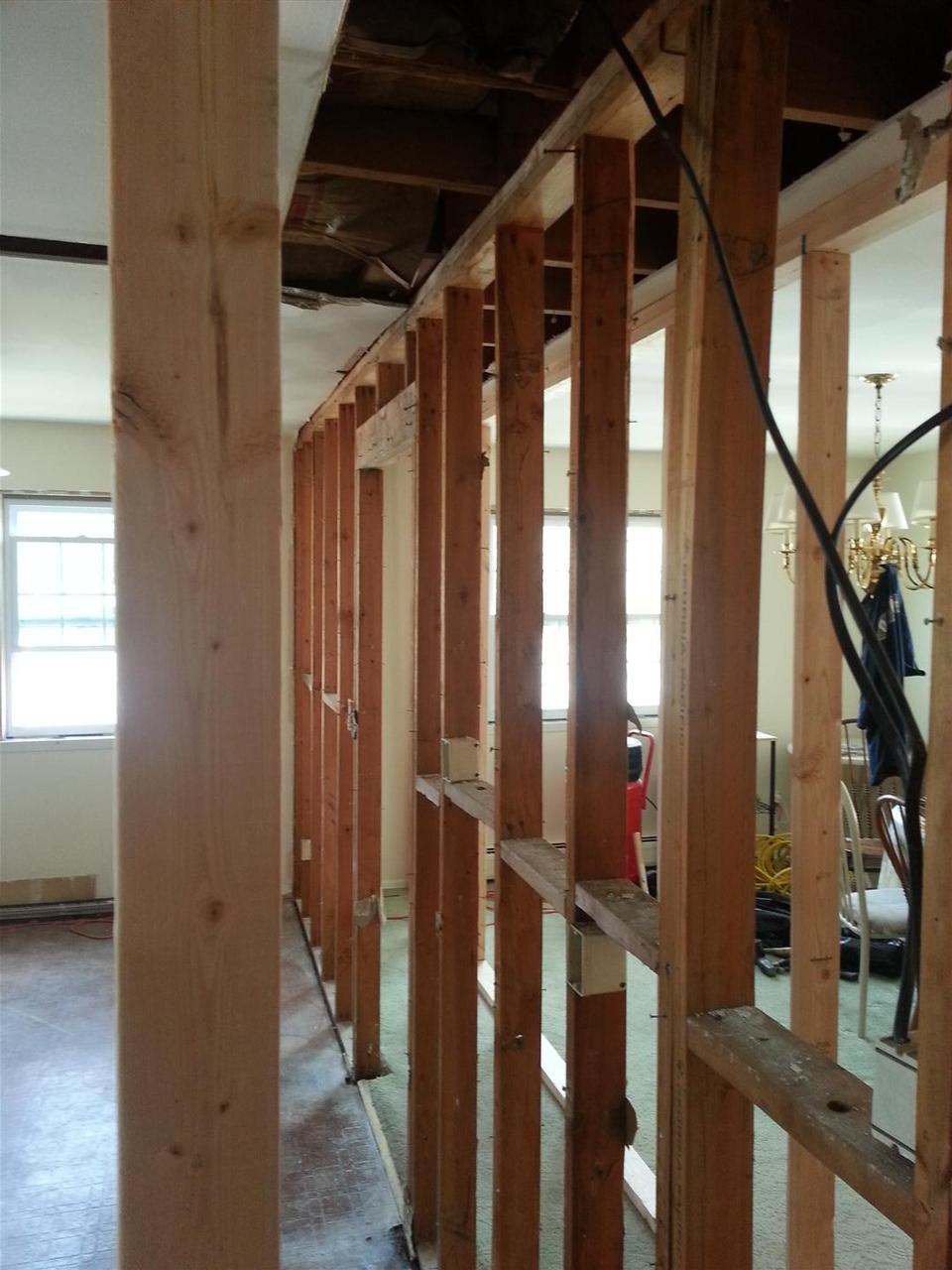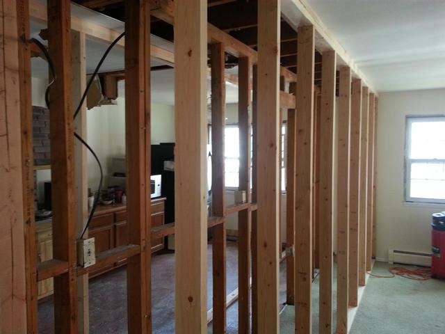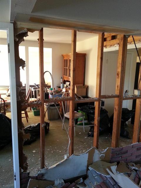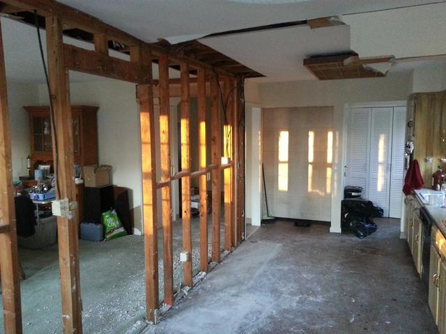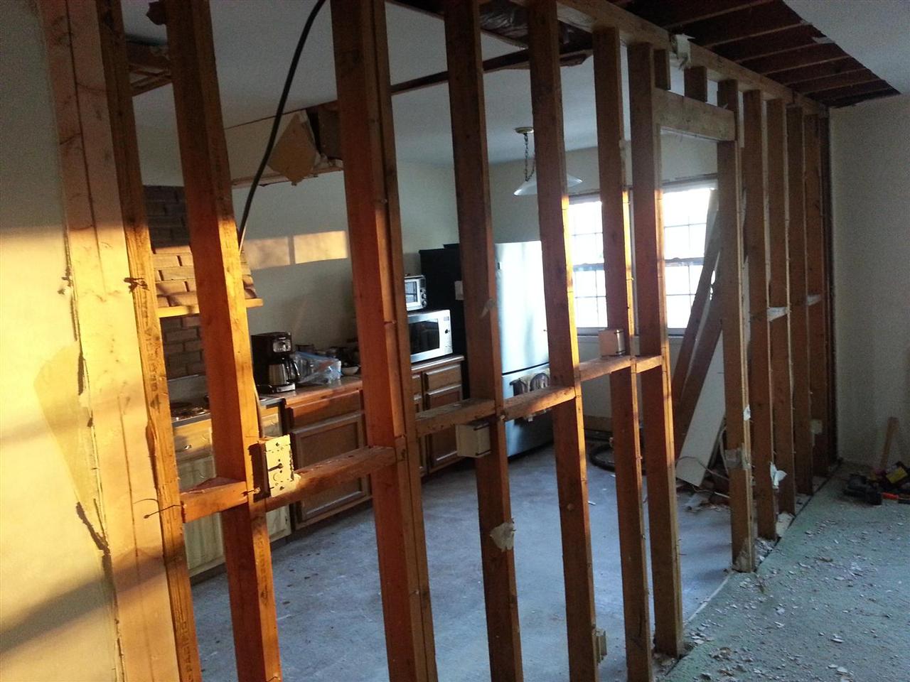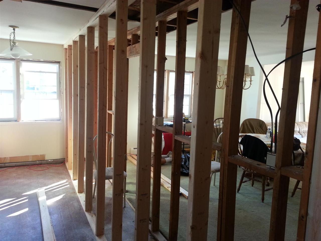Even before Lauren and I had an accepted offer on the new house, we knew we would be tearing down the wall between the kitchen and the dining room. Unfortunately since this wall runs directly under the second story exterior wall. This means the wall carries all the weight of the second floor joists, kitchen ceiling joists, exterior walls and both first and second story roof load - making this wall extremely load bearing. With a span nearly 16 feet in length, this is not something you want to ballpark. An architect and family friend - appropriately named Bill Wall - was kind enough to work up a quick set of plans and spec the beam out for us.