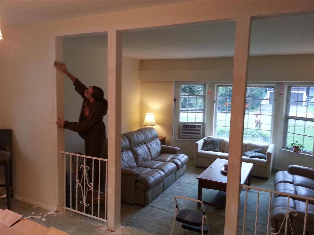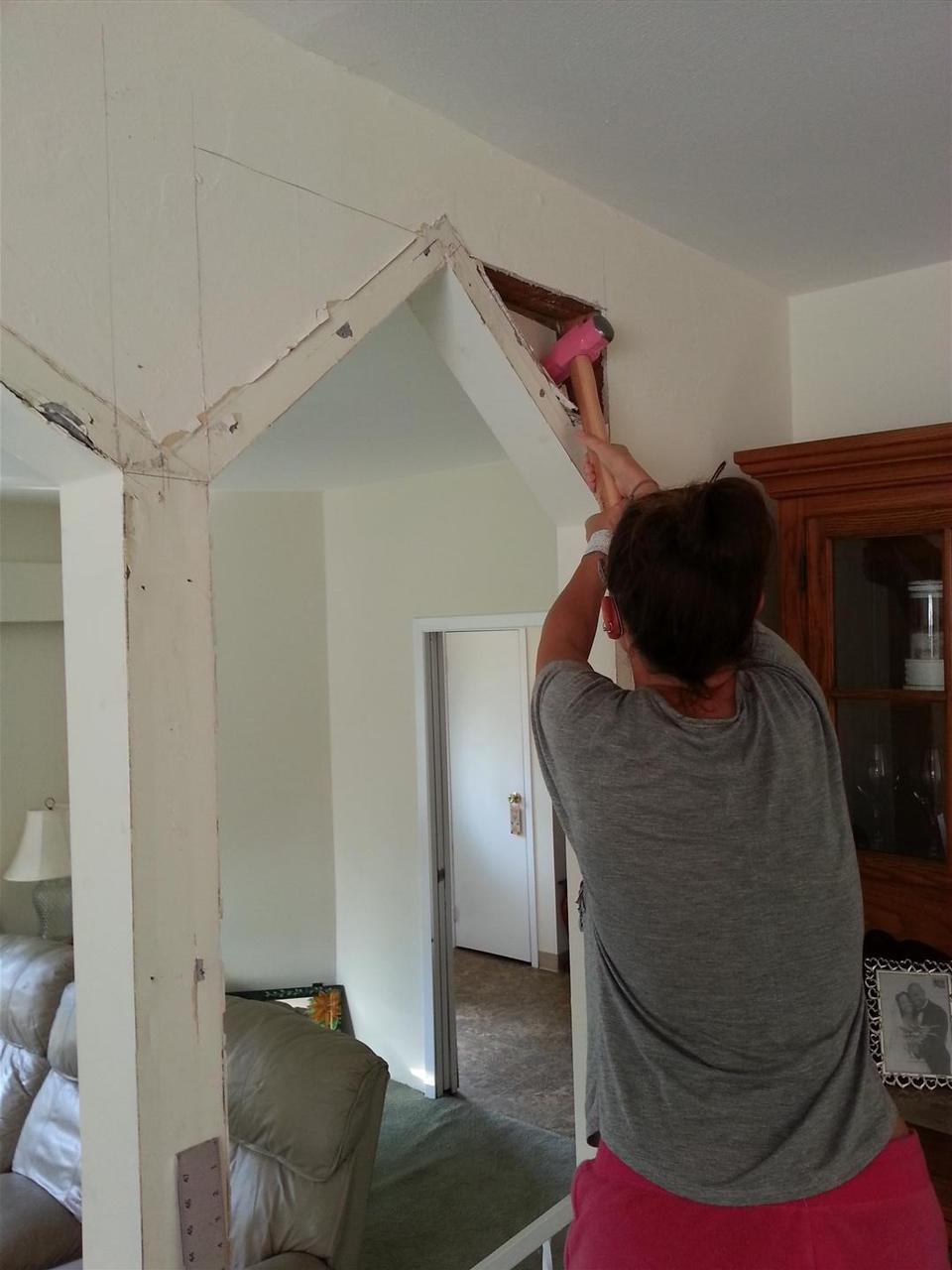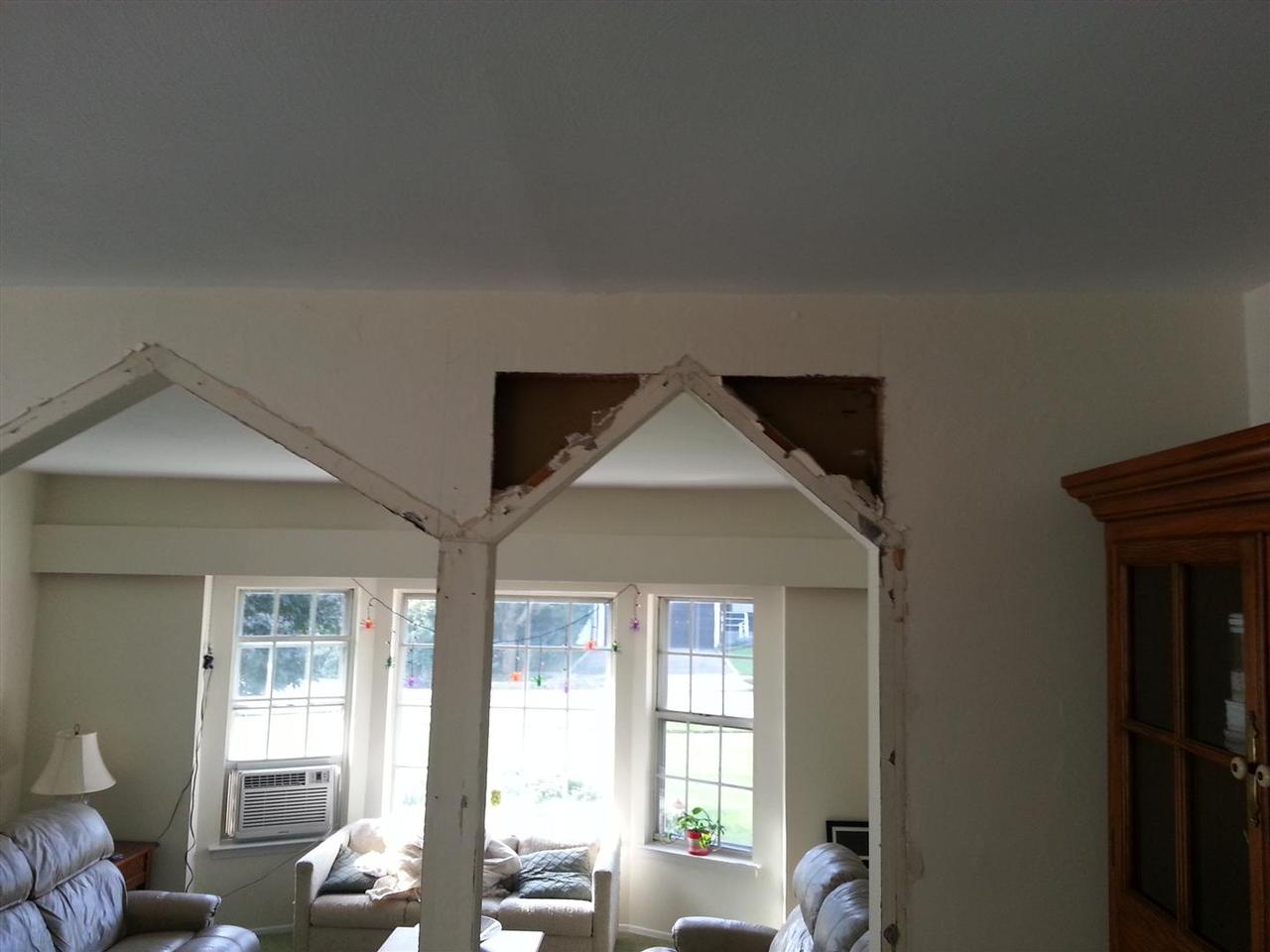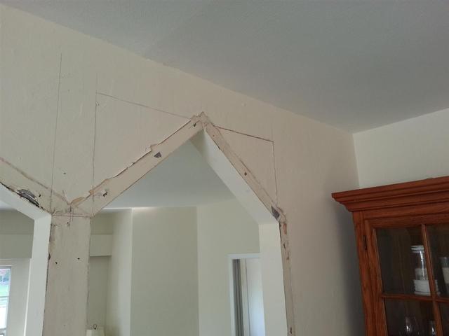 These pointy arches were possibly Lauren and my least favorite aspect of tyhe new house. We couldnt wait to get rid of them. We considered doing curved arches, but finally decided that going squared off was a better look and would hopefully stand the test of time - unlike these beauties.