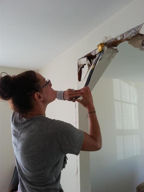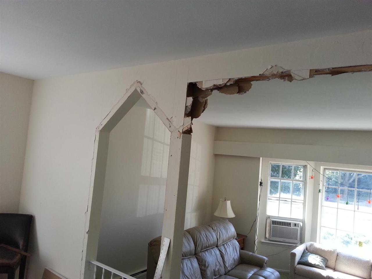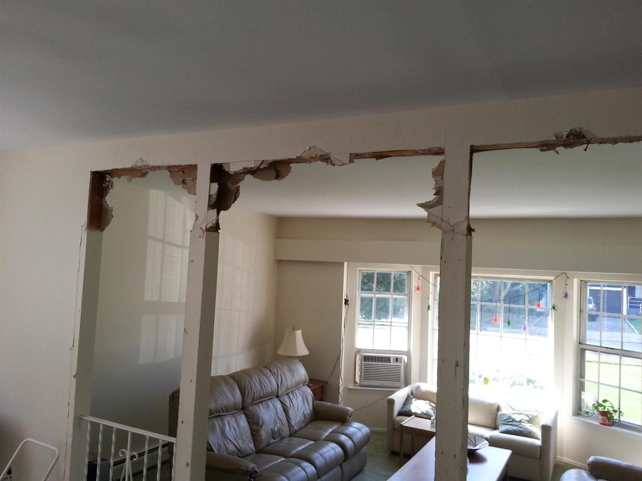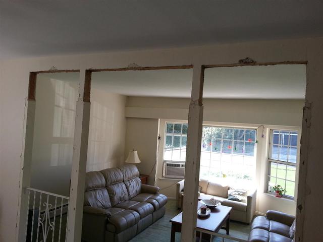 These pointy arches were possibly Lauren and my least favorite aspect of tyhe new house. We couldnt wait to get rid of them. We considered doing curved arches, but finally decided that going squared off was a better look and would hopefully stand the test of time - unlike these beauties.